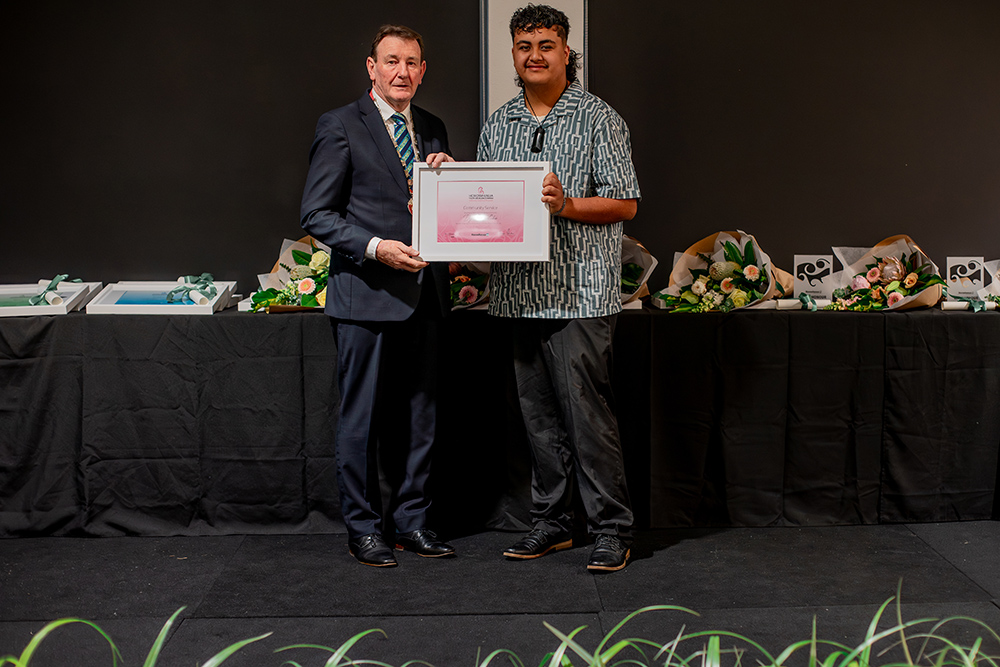 Tonight, we acknowledge and celebrate Pusa Fonoti, a talented artist whose creativity and leadership shine within our community. Since joining Horowhenua College in 2021, Pusa has shown an inspiring passion for Samoan culture and Pacific performance, using his talents to uplift and unite others.